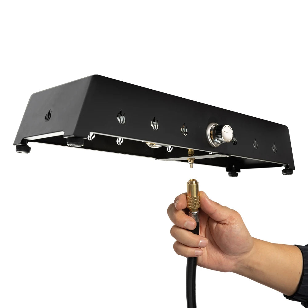 - Comes with a regulator and quick-connect joint for easy hookup; rocks and shield are included, while a lid, spark screen, and fire poker are not included.