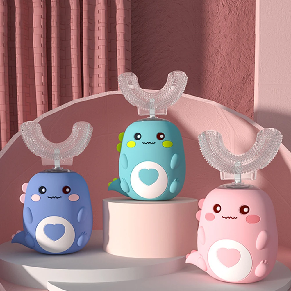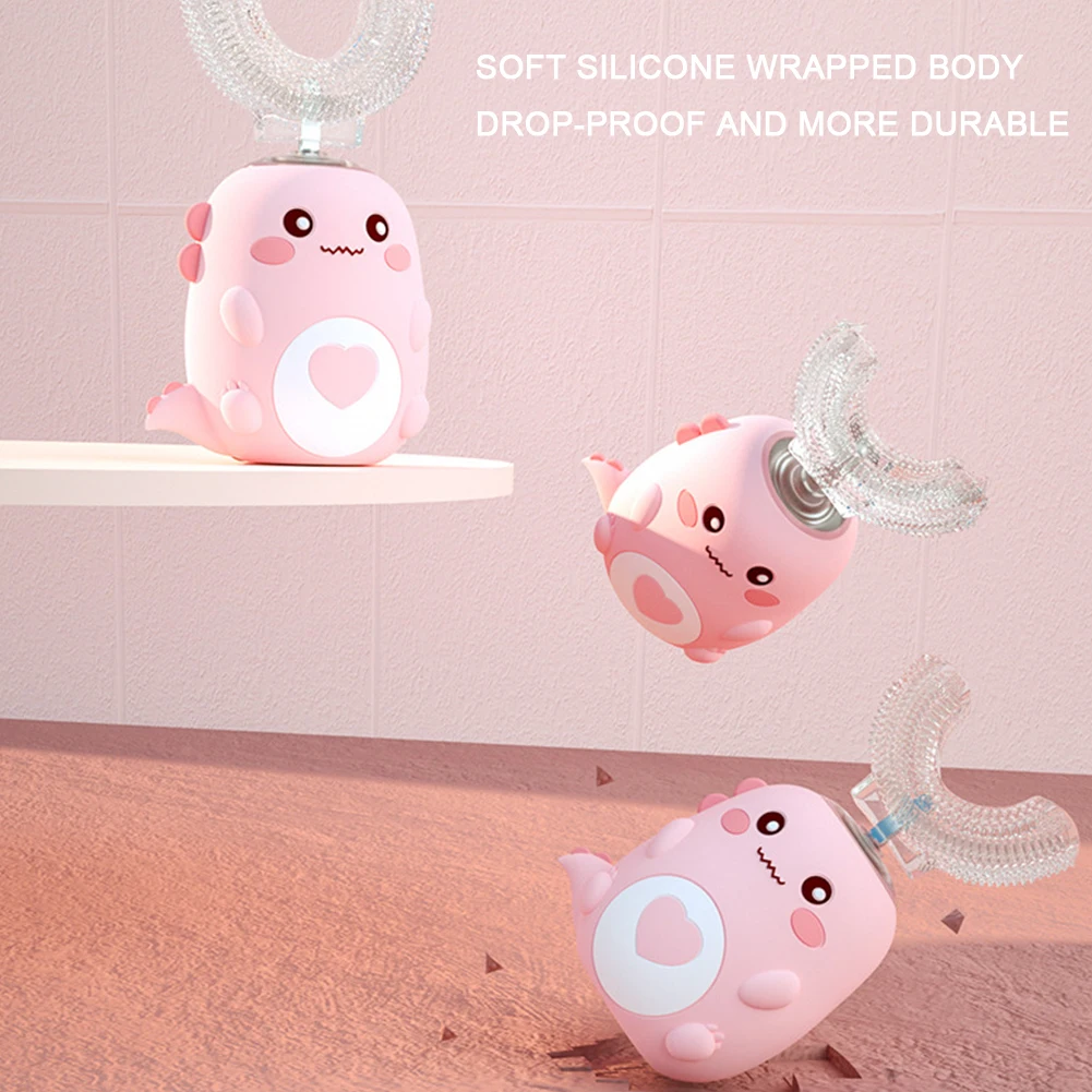 Children U-shaped Electric Toothbrush 360 Degrees Smart Cartoon Kids silicone Toothbrush Automatic Rechargeable Sonic Toothbrush