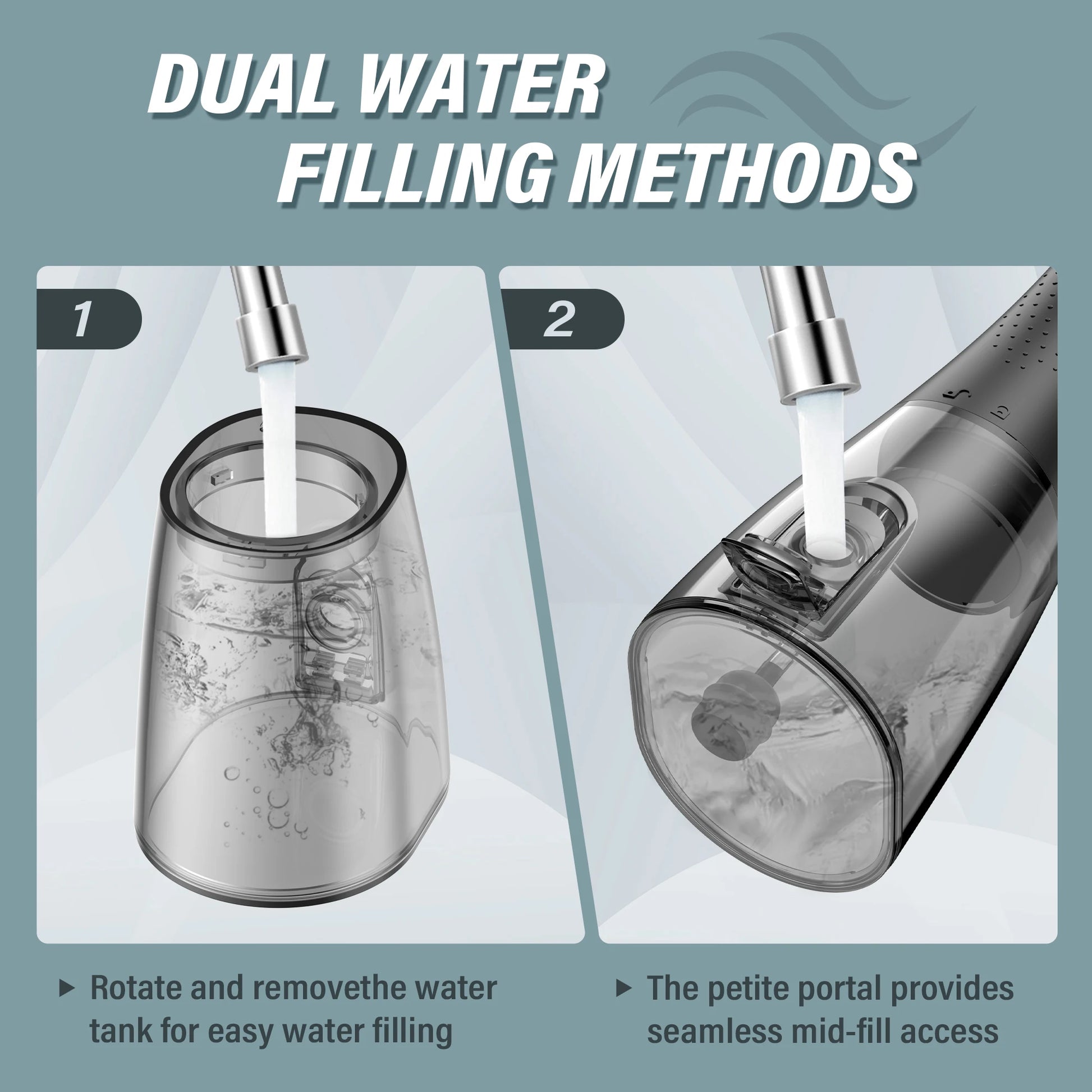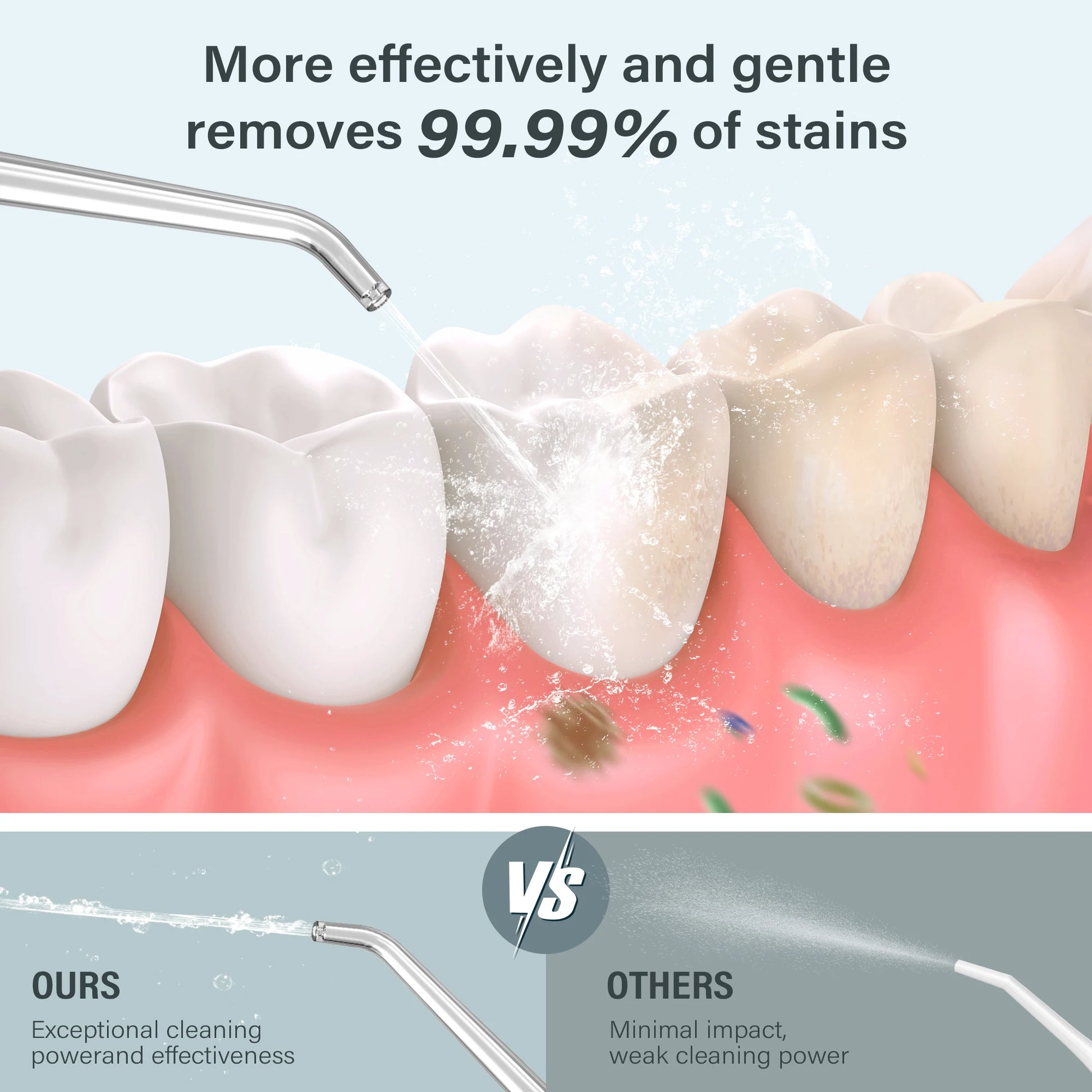 Our Water Dental Teeth Cleaner Pick adopts IPX7 waterproof design, which can be used safely for shower in the bathroom and washed under water directly for cleaning.